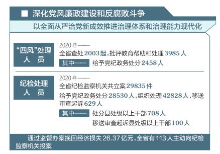 构建“亲”“清”政商关系、“简”“减”同志关系、“严”“严”组织关系,实现干部清正、政府清廉、政治清明。一年来,全省上下坚持不敢腐、不能腐、不想腐一体推进战略目标,一刻不停深化党风廉政建设和反腐败斗争。坚持“老虎”“苍蝇”“狐狸”一起打,违规、违纪、违法问题一起查,“四风”土壤、腐败土壤、“黑恶”土壤一起铲……积极构建控新、治旧、抓早、铲土的工作格局,着力以风清气正的政治生态推动形成活力迸发的创新生态,以全面从严治党新成效推进治理体系和治理能力现代化。 大力营造以结果论英雄的浓厚氛围,引导党员干部在新征程上冲锋在前、建功立业。一年来,省委深入贯彻新时代党的组织路线,部署开展县乡党政主要领导岗位“墩苗”行动等“七大行动计划”,调整5名省直正厅长级干部到承载转型使命的旗舰企业任职,着力选出好干部、配出好班子、激发新活力。当前,全省上下正在扎实开展政法队伍教育整顿,围绕筑牢政治忠诚、清除害群之马、整治顽瘴痼疾、弘扬英模精神四项任务,努力打造党和人民信得过、靠得住、能放心的政法铁军。
