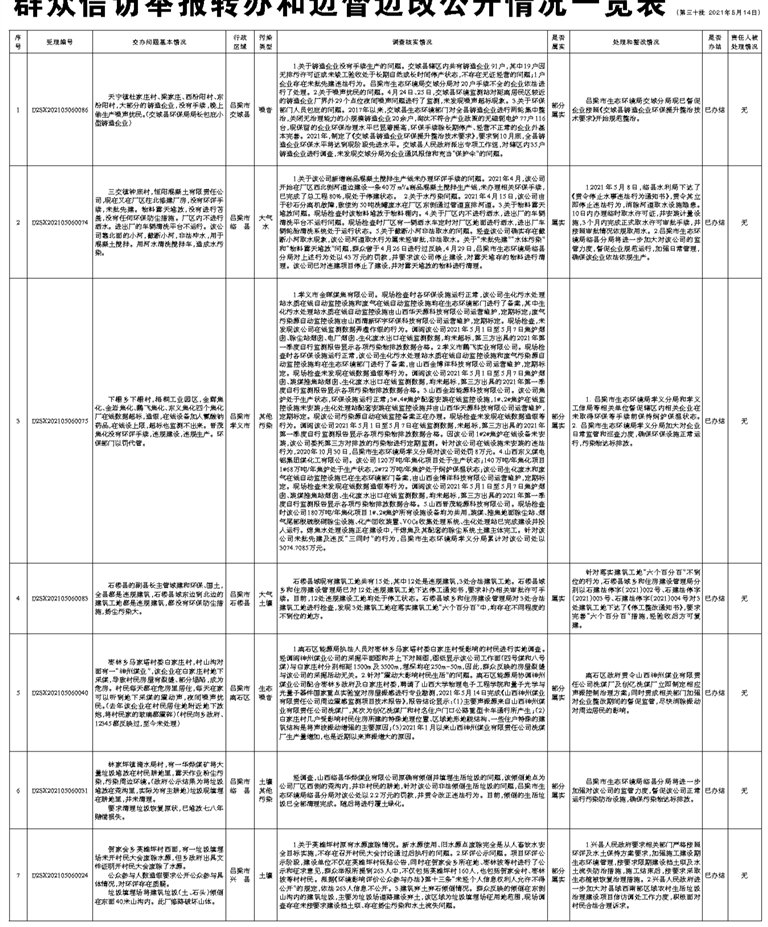群众信访举报转办和边督边改公开情况一览表