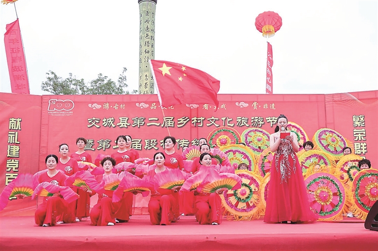 百年大党风华正茂,山水交城激情如火。5月18日——23日,作为交城县庆祝建党一百周年群众文化系列活动之一的第二届乡村文化旅游节暨第二届段村传统文化艺术节隆重开幕。唱念做打、戏曲艺术传国粹;锣鼓喧天、秧歌铁棍轮登台;开笔启蒙、民俗文化润心灵;激情歌唱、歌声飞扬颂党恩……文艺比拼、民俗展演、非遗传承、乡村旅游精彩纷呈,热情洋溢,全面展现了23万交城儿女百年来在中国共产党的领导下,进行革命、建设、改革的壮美画卷,让现场观众享受到了一场视觉盛宴和文化大餐。 孙宝忠 摄