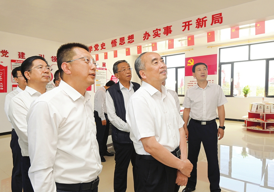 盛夏的晋北大地,天高云阔。两天时间里,林武考察园区企业、走进农村农户,宣讲习近平总书记“七一”重要讲话精神,了解产业转型、乡村振兴、生态建设和基层党建等情况,与党员干部群众深入交流,共商全方位推进高质量发展。在大同经济技术开发区展厅,林武听取规划建设和各项指标完成情况汇报,指出,要着眼确保“十四五”开好局起好步,强化招商引资和配套服务,狠抓一批支撑转型的大项目,既要有“星星”更要有“月亮”,全力建强转型发展主战场。要深入推进能源革命综合改革试点,坚决淘汰落后产能,推动能源清洁低碳安全高效利用,加快构建绿色产业生态。林武认真听取秦淮数据、同药集团等企业发展战略和产品介绍,勉励企业专心致志把产品做精、把产业做强。大同新成公司、宇林德公司是石墨新材料领域的龙头企业,林武入企了解高铁受电弓碳滑板、高纯等静压石墨、石墨电极等产品工艺、特性和市场前景,强调要抢抓发展机遇,依靠科技创新在拓展市场上下更大力气,不断提高企业竞争力。在中联绿色大数据产业基地,林武叮嘱企业要聚焦“零碳”目标,加快建设进度,引入上下游企业,助力大同打造“绿色云谷”。