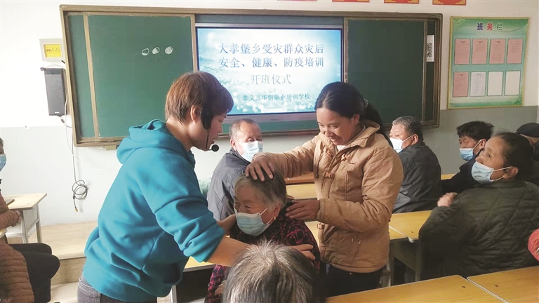 10月14日,孝义市文艺工作者走进大孝堡镇受灾群众集中安置点,开展“心系群众、情暖重阳”慰问演出活动,为安置点的老人们献上精彩的节目,并送上过冬慰问品。孝义市人社局心理、疾控和技能培训老师,针对受灾群众灾后重建所需技能,灾后安全、身体健康保健以及灾后防疫、心理疏导方面开展专业培训,帮助受灾群众安心度过安置期。