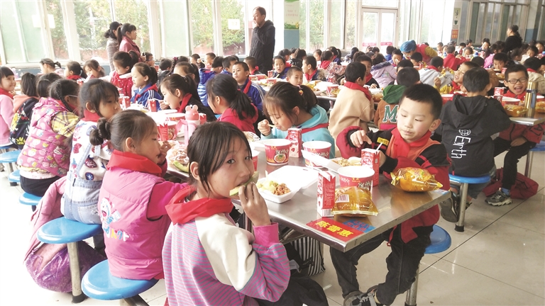 顺利入学、妥善入住,一切按部就班,学生们来到了新的学校开始学习与生活。正值午饭时间,笔者来到餐厅,低年级学生正在就餐,荤素搭配、牛奶水果,孩子们的脸上都洋溢着开心的笑容。