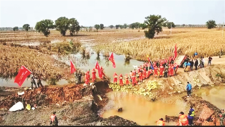 10月13日12时55分,随着最后几袋石料被投入决堤口处,磁窑河孝义段位于大孝堡镇小疙瘩村附近的一处长达25米的决堤口被顺利封堵,14日16点第四处决口封堵,决口封堵工作全部完成。