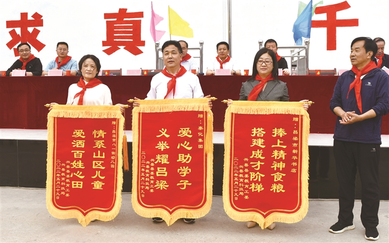 在全市办好人民满意教育进入质量提升、内涵发展的关键时刻,在第72个“六一”国际儿童节来临之际,市教育局领导没有忘记山区儿童。5月29日,市教育局党组书记、局长赵雪宏率领吕梁新华书店经理刘月明、吕梁市八一街幼儿园园长任艳宏一行,远赴100多公里外的偏远山区学校——兴县蔡家会明德小学,与学校师生同庆“六一”国际儿童节。5月31日,市教育局副局长杜宏亮率领吕梁新华书店经理刘月明、吕梁市八一街幼儿园园长任艳宏来到临县招贤寄宿制小学与学生欢度“六一”。同时,市教育局积极倡导组织爱心企业、爱心学校为山区孩子们送去了急需的学习生活用品。