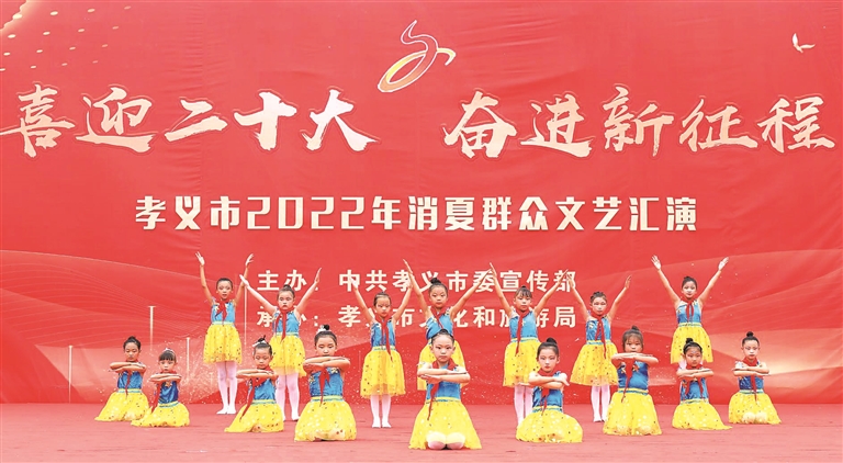 据悉,该市今年共开展13项群众文化惠民系列活动,包括非遗展、消夏群众文艺汇演、免费送戏下乡惠民演出、全民阅读系列活动、专场音乐会、广场舞大赛、群众摄影艺术展、第四届农民歌手大赛、书画剪纸作品展、“七一”专场文艺汇演、曹溪河越野自行车邀请赛、孝河湿地公园马拉松赛、全市戏剧票友展演季,系列活动以“迎接党的二十大”为主题展开,充分展示该市经济文化社会发展成果,进一步丰富全市人民群众的精神文化生活,切实增强人民群众的满足感、幸福感、获得感。