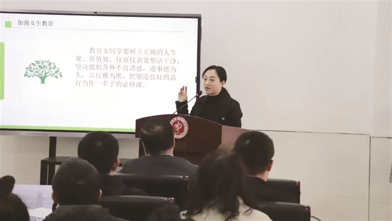 担任班主任以来,她以很诗意的方式管理学生。一次,张月红老师偶然走进教室,眼前一片狼藉让她惊呆了,窗户敞开着,风呼呼而入,吹得试卷、钢笔满地都是。张月红老师思考片刻在黑板上写下几行字“清风不识字,偏爱乱翻书。莫道是小事,彰显素养心。轻放凳子入桌下,收获一种素养——爱物;人走桌面理整齐,收获一种品格——讲究。”学生回到教室看到这几句话马上意识到今后该养成良好的习惯。