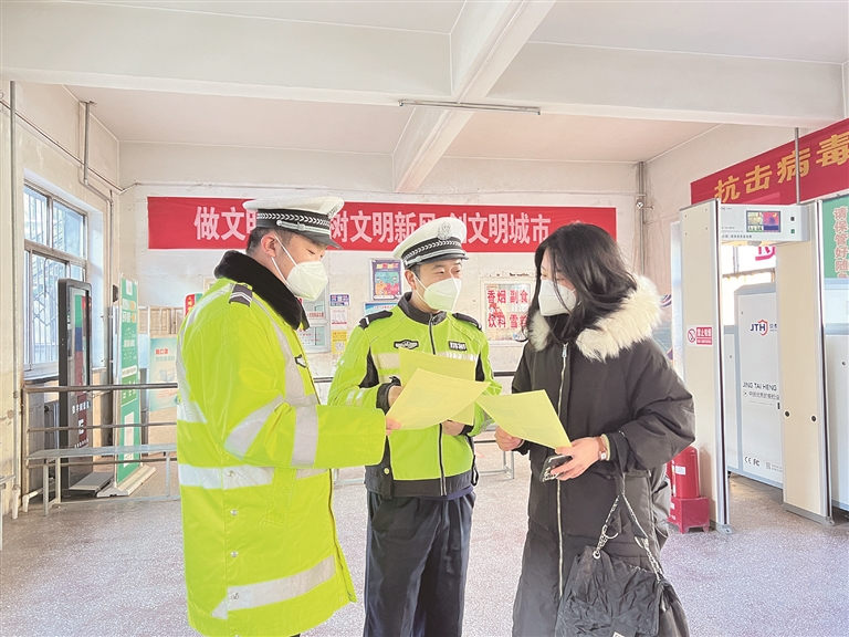 石楼县春运成员单位人员在仪式结束后,积极奔赴各自岗位,切实开展春运交通安全管理工作。石楼县交警大队干警在客运站、王村交通安全执法站等重点领域向过往乘客和驾驶员发放交通安全宣传资料,讲解超员载客、非法营运、无牌无证、饮酒驾驶等交通违法行为带来的危害性。切实通过宣传交通安全行车常识,引导广大群众共同关注春运交通安全。