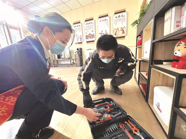 笔者看到,在40平方米左右的爱心驿站里,沙发桌椅、饮水机、电视机、空调、多功能充电器、微波炉、冰箱、纸巾毛巾、防疫口罩、应急医药箱、女士及婴幼儿应急物品、爱心雨伞等服务设施及日常用品一应俱全,可以为新就业形态劳动者和户外劳动者免费提供临时休息、饮水、乘凉、取暖、热饭、避雨、充电、如厕、使用工具、医药、无线网络、充电、宣教、学习、母婴休息、失物招领、爱心捐赠、志愿活动等20余项公益惠民服务,使他们“冷可取暖、热可纳凉、渴可喝水、累可歇脚、急可如厕、临时避雨”。驿站内还设置了图书柜,为喜欢阅读的劳动者们提供了方便,屋内陈设的绿色植物和鲜花盆栽更是为“爱心驿站”增添了些许清新和活力。