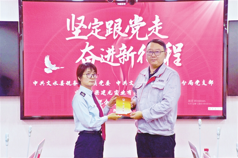 图为文水县税务局为企业送去税费优惠政策。侯利军 摄