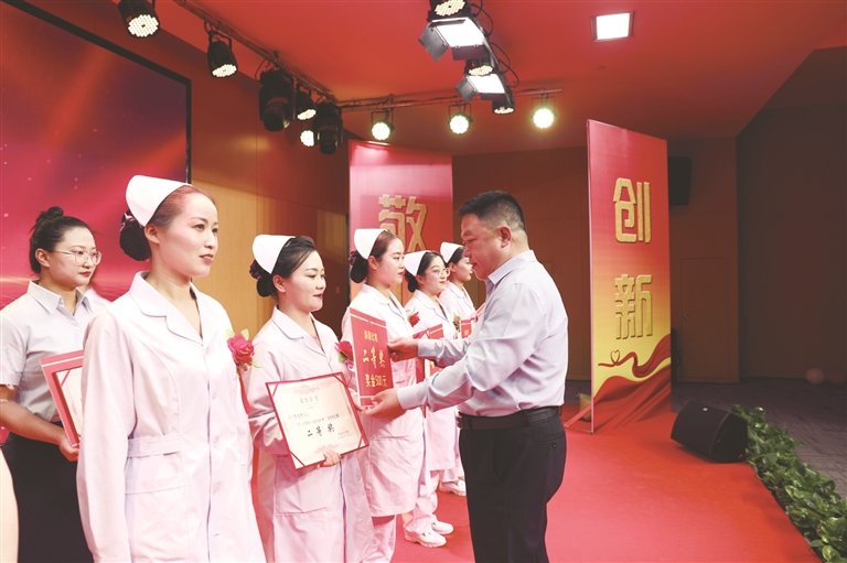 张耀东希望,广大护理工作者要以学促知,全面提高理论知识和操作技能,以知践行,全力转变服务理念和工作作风,以行增效,全心打造优质护理服务品牌;要主动学习、超前学习、终身学习,不断加强专科知识学习,积极开拓新业务、掌握新技能,练就过硬本领,努力成为行业技术尖子、服务能手,为人民群众提供安全、专业、全面、优质的护理服务;要转变工作作风,发扬职业道德风尚,恪守职业道德规范,带着爱心、细心、耐心、责任心服务每一位患者,把热情、温情、真情、深情奉献给每一位患者;要深化优质护理服务理念,优化护理服务质量,打造优质护理服务品牌,为全县护理行业树旗立帜,努力成为全县甚至全市的行业典范,全面提升医院知名度,实现经济效益和社会效益双丰收,共同谱写人民医院高质量发展的新篇章,为建设健康柳林做出更大的贡献! (文/高龙 图/裴芳)