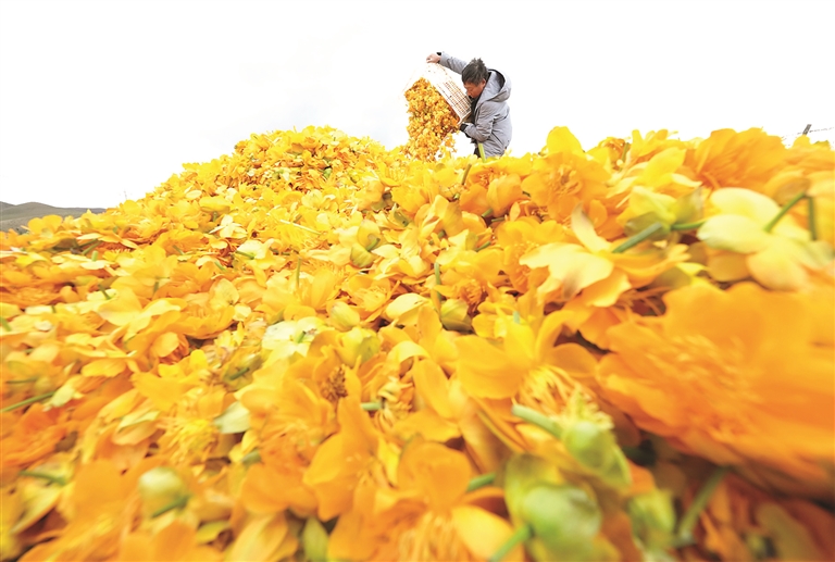 近年来,河北省沽源县依托当地气候特点,引导农民采取“公司+合作社+农户”的模式,发展金莲花种植产业,形成金莲花种植、加工、销售为一体的产业链条,促进农民增收,助力乡村振兴。 新华社记者 杨世尧 摄