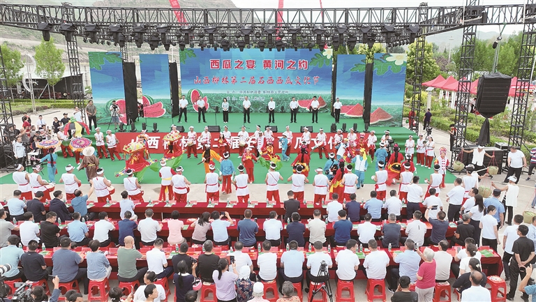 开幕式上,全县28家爱心企业与石西乡现场签订购买意向书,积极参与消费帮扶、助力乡村振兴。柳林县委副书记、县长燕明星在讲话中指出,石西乡西瓜文化节的举办,既是提高石西西瓜知名度、拓宽销售渠道的有效载体,也是促进石西对外交流合作的重要平台。希望石西乡党委政府以此次西瓜文化节为契机,以瓜为媒、以节会友,扩规模、提品质、创品牌、增效益,念好西瓜经,拓展富民路,推动西瓜产业与乡村旅游、观光采摘深度融合,真正把小西瓜做成大产业,为全县乡村振兴率先蹚出“一乡一业”富民路。随后,唢呐表演、歌曲、舞蹈、伞头秧歌等精彩纷呈的节目把西瓜节氛围推向高潮。仪式后,参加活动的县领导还走进特色农产品、民俗文化展区巡展,与展位负责人亲切交谈,详细了解产品生产销售情况,并向游客和网友极力推介本地特色农产品。