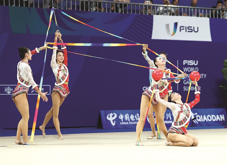 当日,第31届世界大学生夏季运动会艺术体操项目集体全能决赛第二轮在成都举行。最终,中国队以57.150分的总成绩获得冠军。