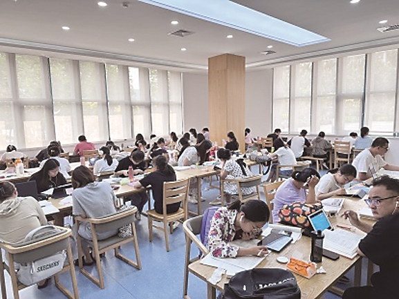在图书馆一楼绘本馆、少儿阅读馆、自习室内迎来了进馆高峰。“小学和初高中学生来看书、写暑假作业,还有一些准备考研、考公的年轻人过来自习、查阅资料,青少年大学生成为进馆主力军。”市图书馆负责人介绍说。