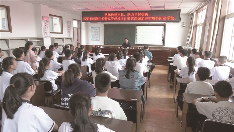 本报讯 (记者 任星) 近日,吕梁市戏剧艺术研究所戏楼文化研究课题走进交城县天宁镇阳渠学校,为该校师生就阳渠村发展史及永福寺古戏台演绎历程作了详细的解读,让师生们通过聆听讲座了解了永福寺古戏台题记在山西戏剧研究中的重要价值。
