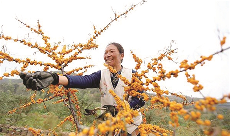 “退耕还林后,俺们就在羊脑山集中种植沙棘,不但生态环境越来越好,俺们的收入也增加了。”深秋时节,在山坡上劳作的王兰珍,指着满山的沙棘林对记者说,“冬天农闲时,俺们剪沙棘果每人每天收入300多元,一年下来,仅在造林专业合作社做工,能多收入3万多元!”