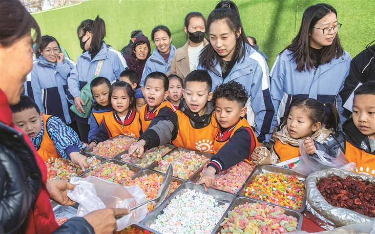 12月7日是孝义市旧城的农历逢五大集,当地楼东幼儿园的老师带着孩子们逛古街、赏民俗,让孩子们体验自己购物带来的开心快乐,品味当地传统的风土人情。 孙燕 摄