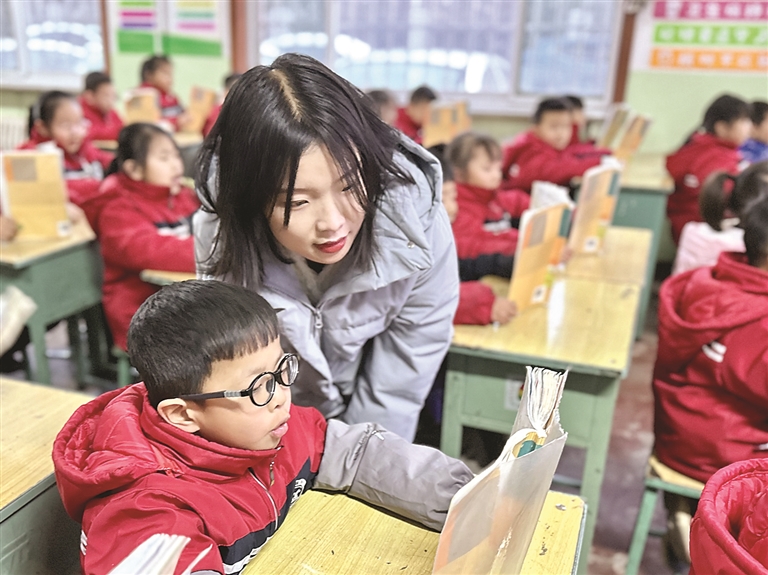 课间时,记者看到不少学生围在李宇花身边,争着和她一起玩游戏。李宇花还时不时地帮小朋友整理衣服,她说:“看到他们开心的笑脸,我也很满足。我的付出、我的价值从他们身上得到了体现。”