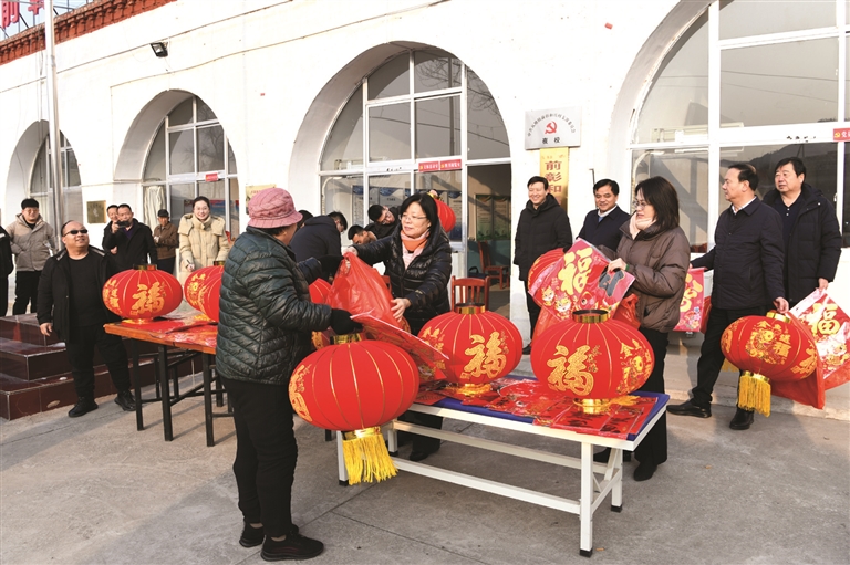 在村委院内,宋兴丽一行人为村民们送上春联、灯笼、福字、窗花等新年用品,整个村庄洋溢着新春的喜庆氛围。随后,宋兴丽一行先后深入困难群众家中,为他们送去米、面等生活用品,并与他们亲切交谈,询问其健康状况和生活情况,嘱咐他们要保重好身体。