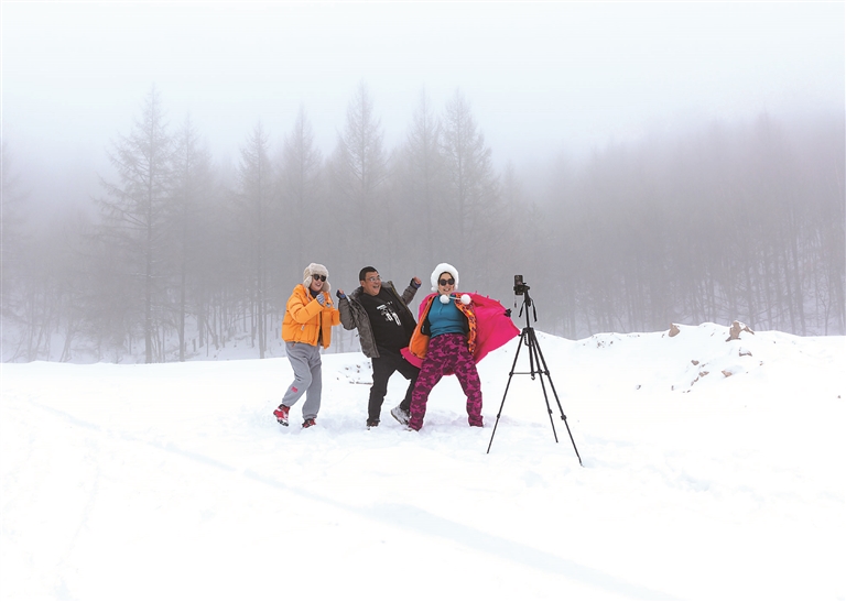 早春三月,离石区大东沟景区依旧白雪皑皑,几位游客在雪地上开心地自拍。 图 / 肖聚保