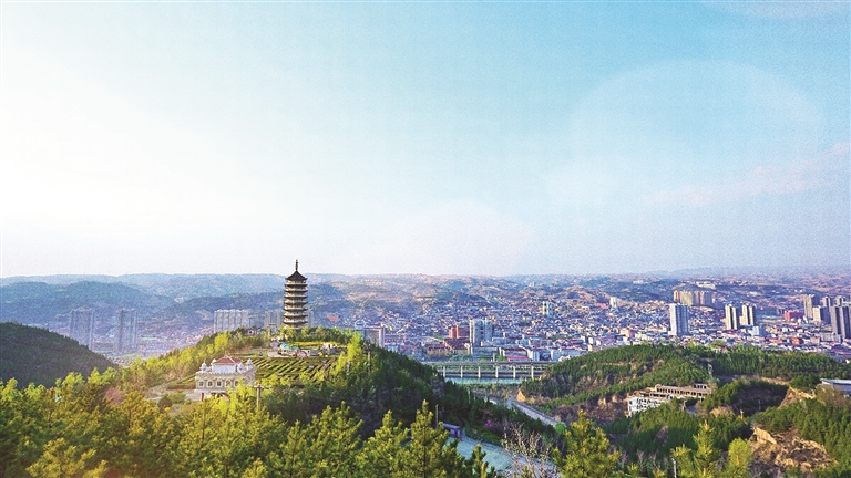 柳林城内清河上的斜拉吊桥,如一条银白色的蛟龙横卧在青绿的河水之上,从这座吊桥过河,顺石级而上,就可登上南山山顶。
