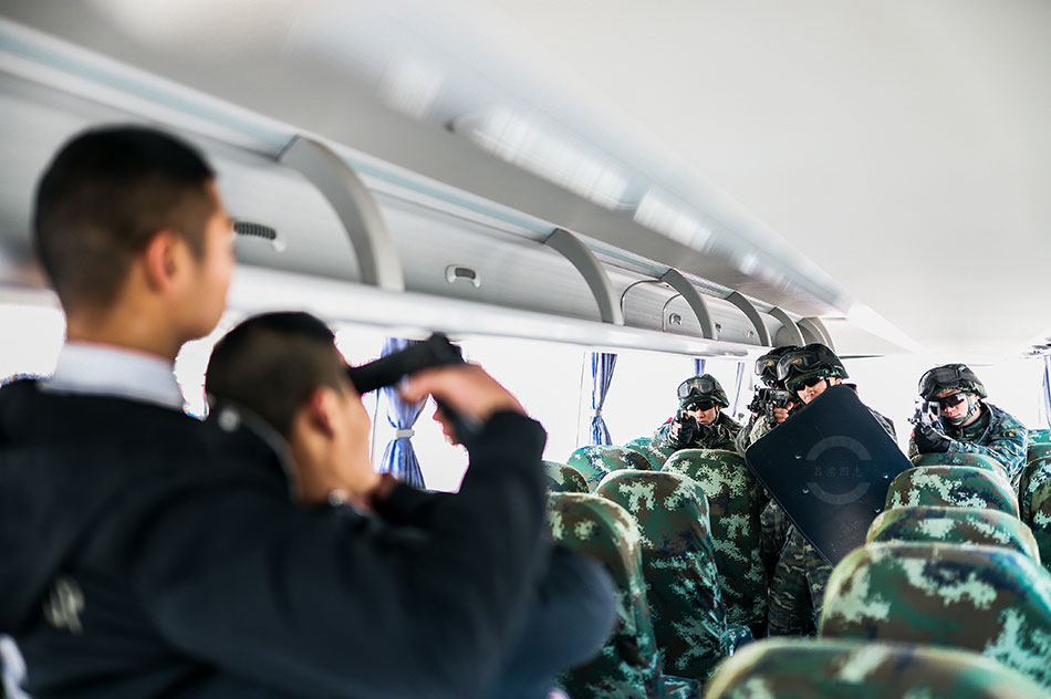 特战小组在车厢里搜索,看是否有遗漏。曹正玉 摄