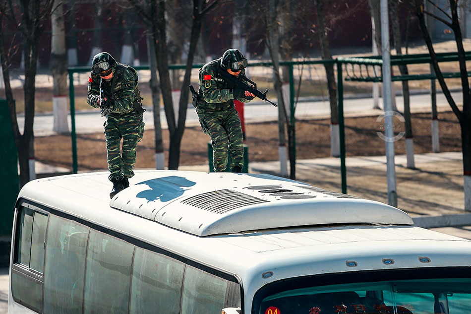 靠近目标车辆后,特战小组准备从侧翼突入。(曹正玉摄)