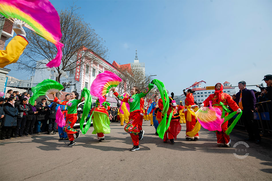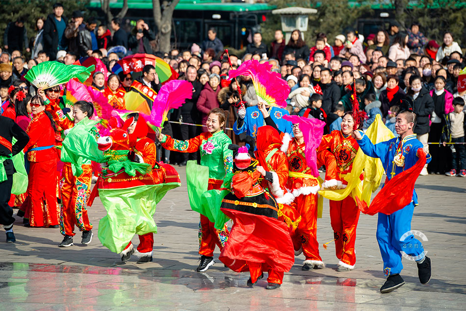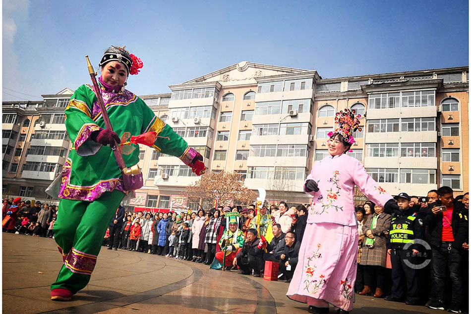 2月19日,元宵节当天,市区的秧歌队走上街头进行了集中展演,吸引了不少群众前来观看。记者 刘亮亮 摄影
