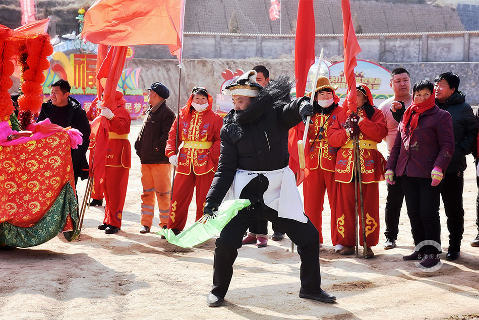 柳林穆村的舞狮表演。