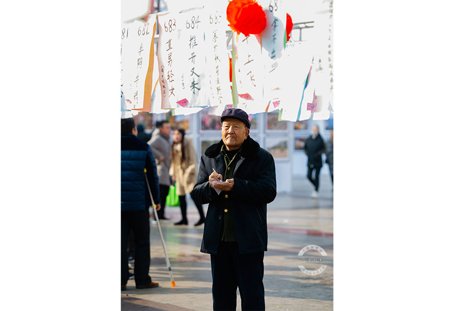 一位老者正在认真研究灯谜。记者 刘 亮亮 摄影