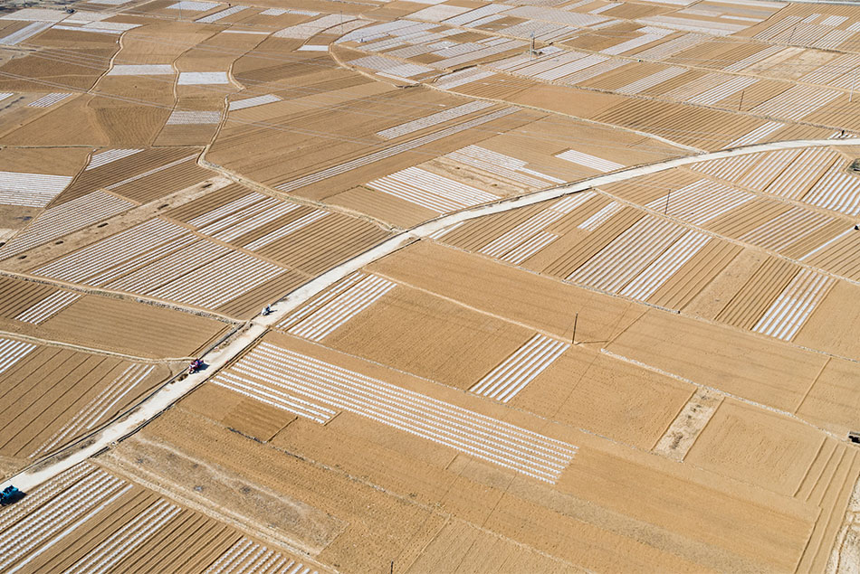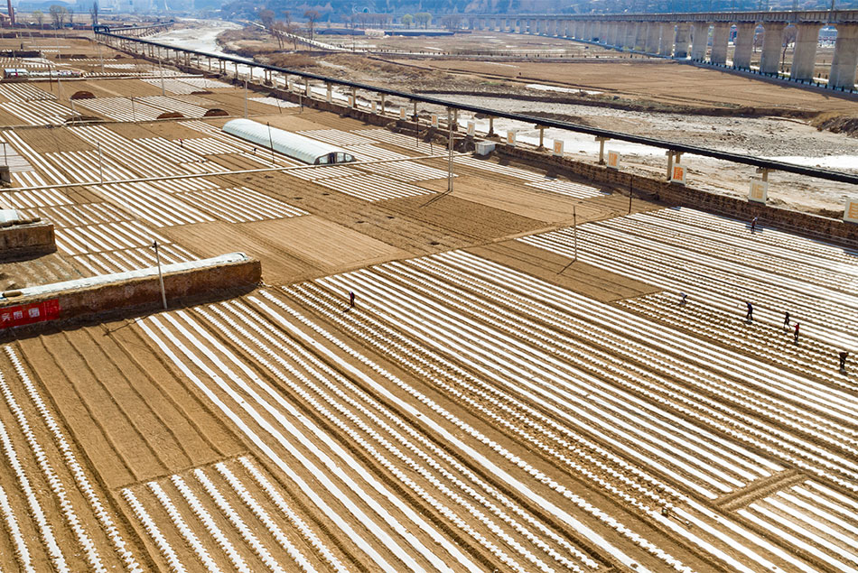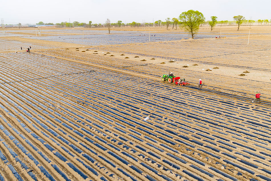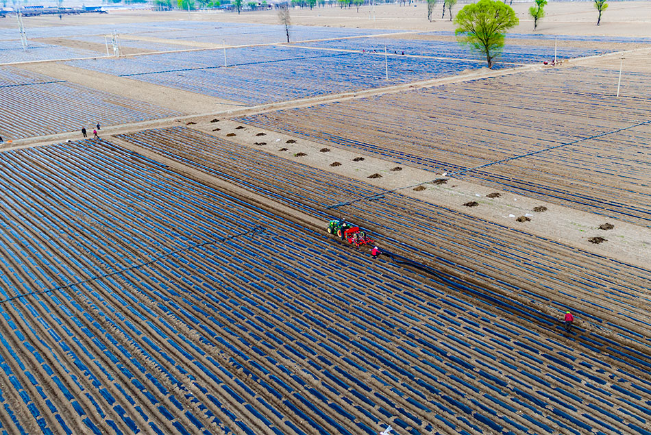 岐道村的春耕覆膜作业已接近尾声。记者 刘亮亮 摄影