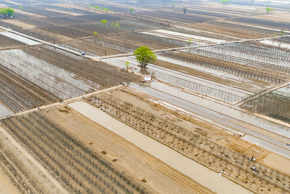 文水县南庄镇南庄村,农民正在田间进行春浇作业。记者 刘亮亮 摄影