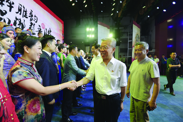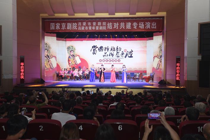 本报讯(记者李雅萍)赏国粹雅韵,品梆声晋腔。为进一步弘扬优秀传统文化,促进京剧艺术发展,7月5日晚,在我市采风的国家京剧院与市直院团吕梁市晋剧院、吕梁市青年晋剧院在吕梁影剧院举行结对共建专场演出。省政协副主席、市委书记李正印,市委副书记、市长王立伟,国家京剧院党委书记、院长宋晨等领导观看演出。