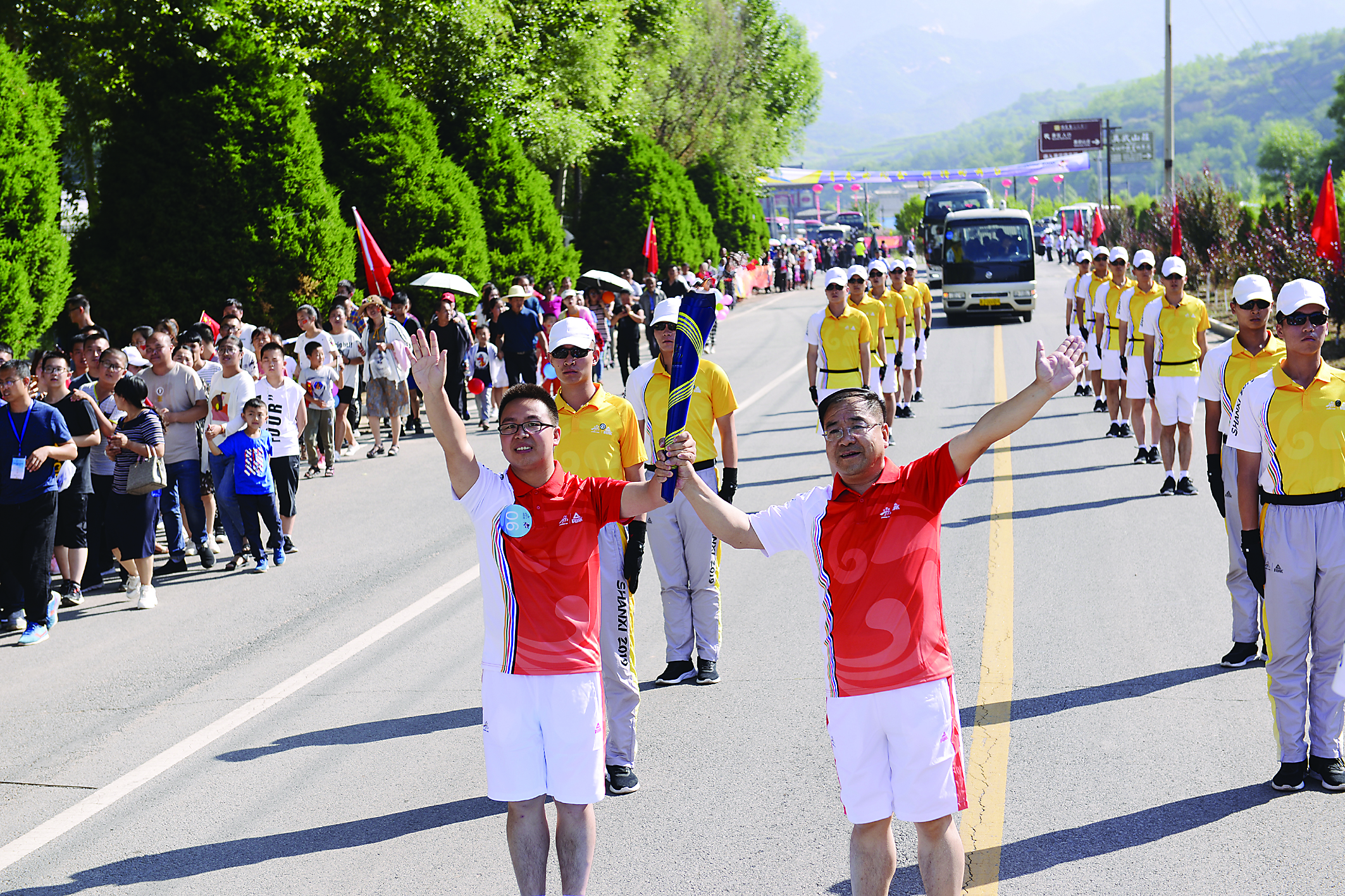 上午9时整,火炬传递方山站起跑仪式在北武当景区游客中心举行。第一棒火炬手侯三军高擎火炬,迈着矫健的步伐出发。火炬传递路线先后经真武山庄、下昔村、北武当信用社、北武当派出所、天玉食品、利平食油、河庄村五巷,最后到达北武当寄宿制小学,全程2.5公里。火炬手们在尽享北武当山脚下风景的同时,也受到沿线广大群众热情的呐喊助阵。这25名火炬手中有警察、有教师、有学生……通过此次火炬传递,更激发了该县人民弘扬运动精神和乡村振兴脱贫摘帽的决心信心。