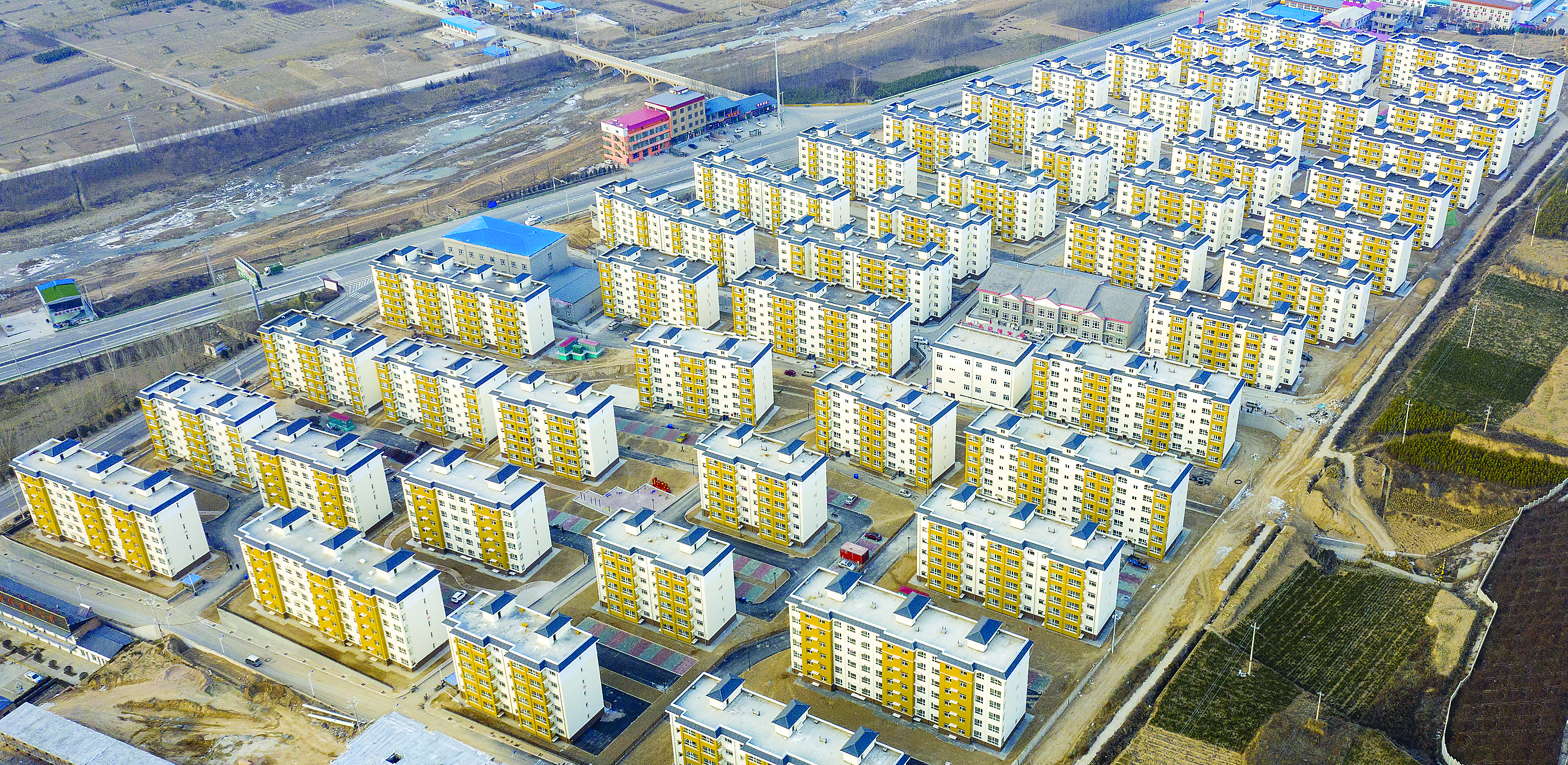近日,无人机拍摄的临县湫水万安苑易地移民安置点。湫水万安苑易地移民安置点项目占地205亩,建设有6层住宅楼51栋,全部2004套住房可安置13个乡镇94个自然村的7194人(建档立卡贫困户4395人,同步搬迁2799人),目前,群众已搬迁入住。
