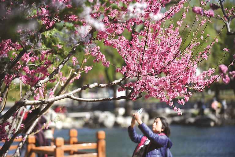 当日,北京天朗气清,春光明媚,市民走出家门,踏青赏花。