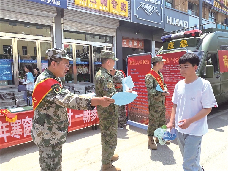 本报讯 十年寒窗、锤炼成才,一朝参军、继往开来。6月7日,石楼县人武部以高考为契机,开展“助力高考 向往军旅”征兵宣传活动。