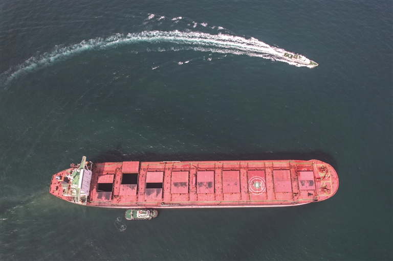 6月23日,新列编的边检执法公务船在进行海上演练(无人机照片)。