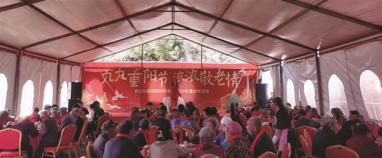 离石区吴城镇陈家塔村迎来了九九重阳的敬老活动