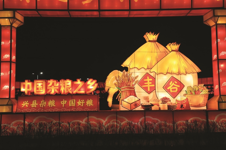 在兴县高速东口,大型花灯上打出了“杂粮之乡、兴旺之县、红色兴县”主题,既增添了喜庆氛围又展现了兴县特色。“忽如一夜春风来,千树万树梨花开”晋绥北路、晋绥南路的主干道上,五彩缤纷的花灯将县城装扮得如梦如幻、美不胜收。