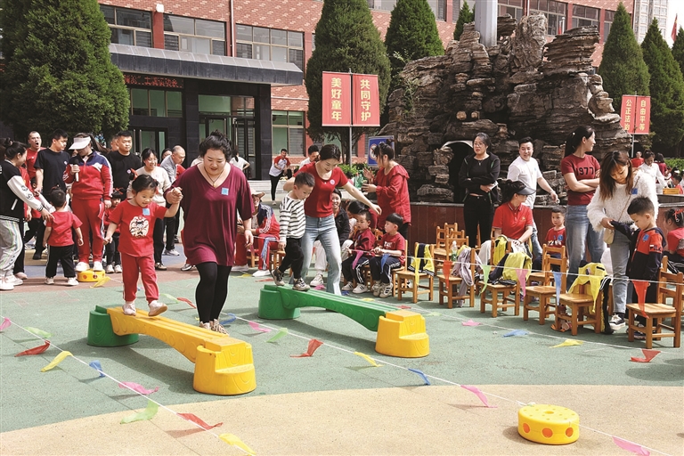近日,文水县凤城幼儿园举行“哪吒”主题春季亲子运动会,幼儿和家长700余人参加。运动会借助“哪吒闹海”神话故事中充满冒险、勇敢和正义的情节,设计了“哪吒闯天关”“勇闯龙宫”“封神大战”“无敌乾坤圈”4道闯关游戏环节,孩子和家长积极参与,配合默契,互相加油鼓劲,现场气氛热烈欢乐。运动会旨在激发幼儿热爱体育运动,培养勇敢、自信、团结协作的精神,增进亲子间感情,体验运动的快乐。 冯增清 摄