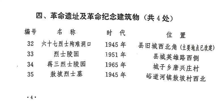 汾阳市档案馆珍藏的档号为002-1·1·1-513的档案里,一份题名为《关于公布首批县级重点文物保护单位的通知》(汾政发〔1993〕59号),汾阳市人民政府将蒋三烈士陵园确定为首批县级文物保护单位。蒋三烈士陵园坐落于汾阳市冀村镇唐兴庄村,是汾阳市人民政府为纪念抗日英雄蒋三于1965年修建。