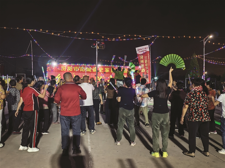 在丰富村民精神文化生活与倡导健康生活方式上,“乡村振兴大舞台”同样发挥了重要作用。此前,舞台成功举办庆“七一”、庆“八一”两场主题活动,红色歌曲演唱等精彩节目轮番上演,不仅为村民带来了文化盛宴,更进一步巩固了基层思想文化阵地。如今,大舞台早已不只是文化表演的“主阵地”,更成为村民全民健身的“热场子”——每晚,村民们都会自发聚集于此,在热心骨干的带领下跳起广场舞、做起健身操。丰富多彩的娱乐活动既增强了村民体质,更在潜移默化中倡导了健康文明的生活新风尚,让文明乡风吹润村民心田。