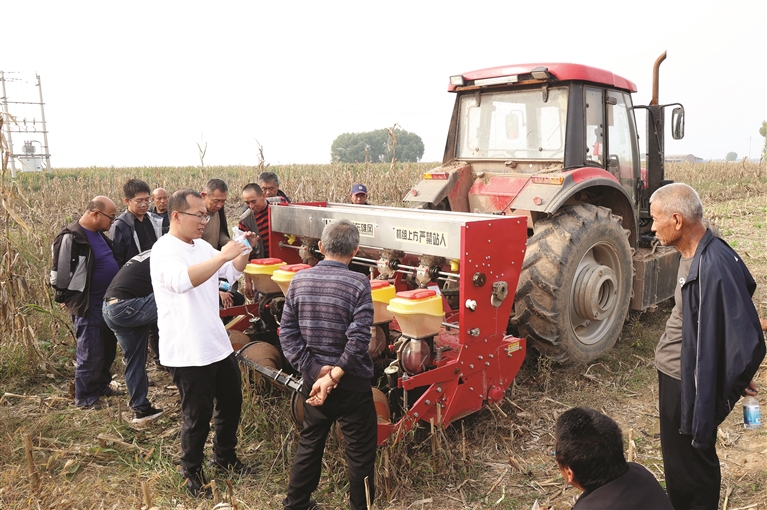 活动现场,众人走进田间地头,在技术人员的指引下实地查看使用“一免五增”技术种植的成果。同时,技术人员通过讲解及实际操作演示一体化农机具等方式,向现场广大农民朋友介绍该技术的特点与产生的经济效益。