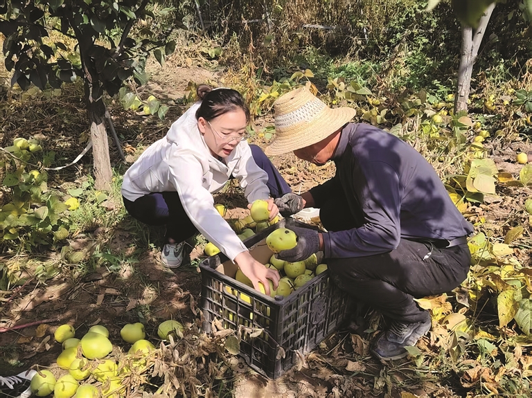 采摘难题解决后,销路问题又成为果农的新困扰。该镇党建办迅速调整工作重心,主动承担起产销对接的职责:线上,通过微信公众号、电商平台等渠道,发布梨园实景、果实品质等信息,扩大产品知名度;线下,策划“消费帮扶进果园”活动,主动对接机关单位及企业,邀请干部职工、企业员工实地考察、采购。在多方联动支持下,玉露香梨订单量显著增加,有效保障了果实的及时销售。