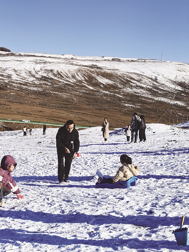 11月9日,周末,冰雪未消的西华镇依旧是白茫茫一片。不少市民带着孩子赶来,让这方冬日草原,宛如欢乐的冰雪乐园。 记者 符宏伟 摄