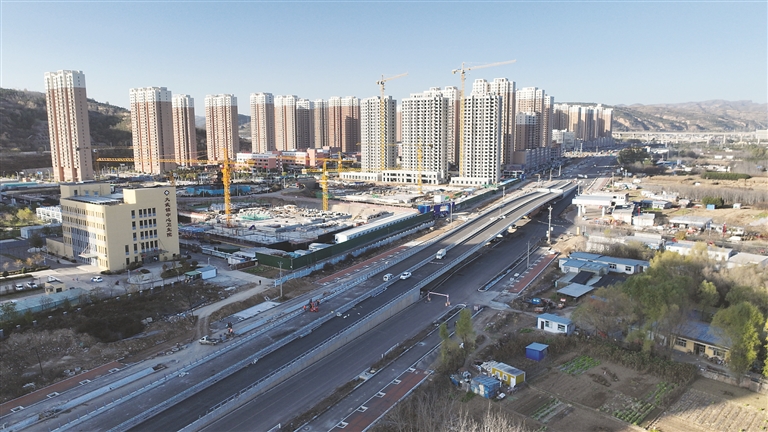 11月9日,吕梁新区新安大道项目方山段辅助工程施工正酣,现场塔吊林立、机械作业不停,道路与建筑工程同步推进,呈现出新区建设的强劲势头。 记者 郭炳中 摄