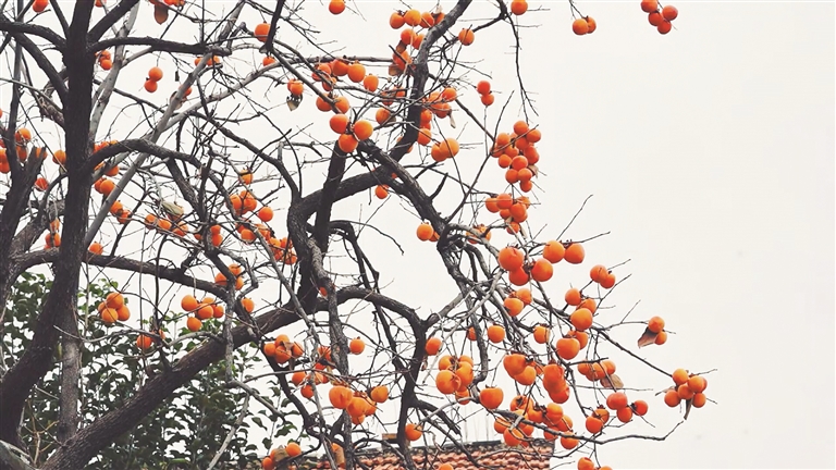 车子刚进村口,路边成片的万寿菊瞬间吸引了视线。金黄的花朵在秋风中摇曳,像铺在山间的地毯,与远处的青山绿水相映成趣。沿着小路往里走,家家户户的院墙外都种着柿子树,红彤彤的柿子挂满枝头,像一个个小灯笼,为这个秋日的村落增添了几分别样的惬意与舒适。