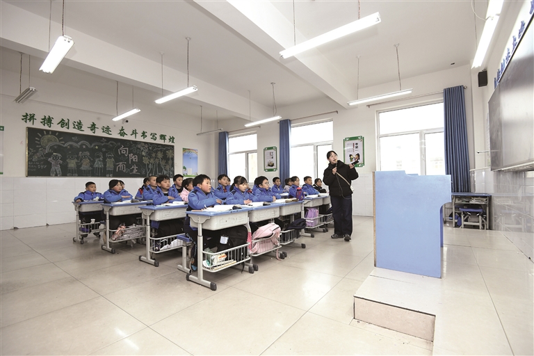 图为临县高级中学附属柏林苑学校,学生们在教室里上课。
