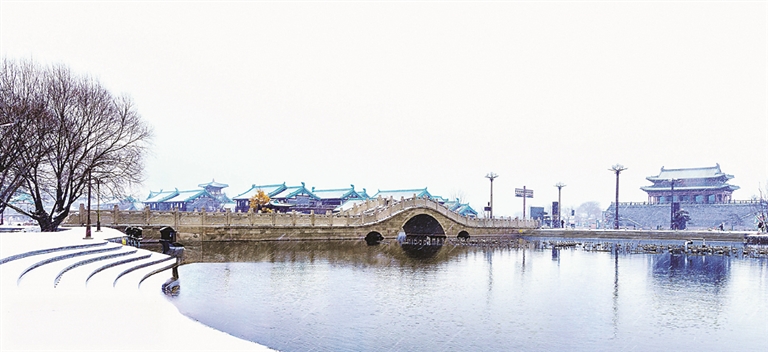 走进老城,雪花翩翩起舞,纷纷扬扬飘落在南华湖上,远望如一幅绝美水墨画。石桥、绿树、古建筑都披上了一层薄薄的冬装,在雪色映衬下更显秀雅。这番景象引得市民惊喜不已,有人驻足赏雪,有人在雪中与古建合影,定格与孝义老城初雪的浪漫邂逅。